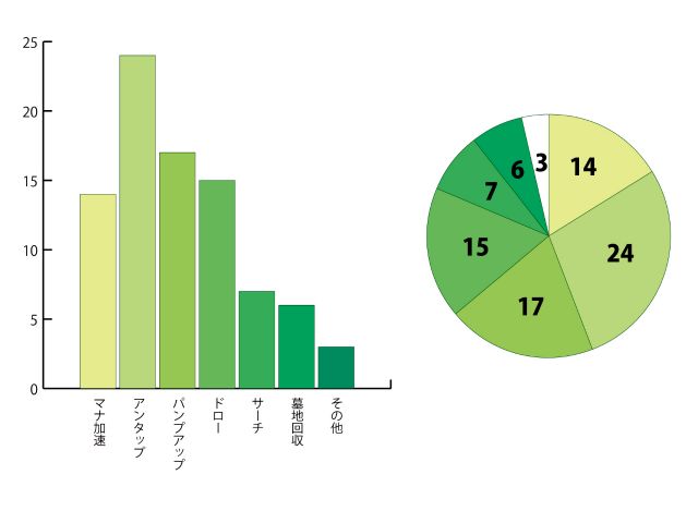 アンタップのカードが多く見えますが実際はパンプアップが一番多くなっています。